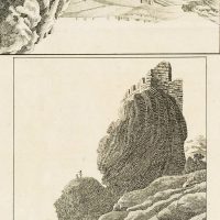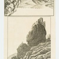 • Description: Pictures are inscribed with titles. The titles are followed by the initials “M.” or “H.”/ “HG”?, presumably monograms. Signed “Kupferstecher Bauer” under the title of the picture of Rochmaure Castle.