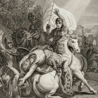 - Description: Titled and inscribed under the picture: “Dayes dip. / Falioni imp. / Gandini inc. Verso in pencil: “21.3.81”. In the centre of the painting is a fallen horseman looking up to the left, where a ray of light breaks through the clouds. The depiction takes up a theme from the biblical Acts of the Apostles: the Damascus experience of Saul, the persecutor of Christians (Acts 9:1-19). On the way to Damascus, where he wanted to imprison Christians, he is blinded by a bright light, falls to the ground, hears the voice of Christ and is struck with blindness.
