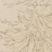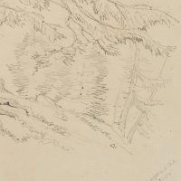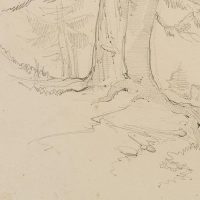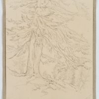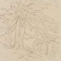 Edmond de Bretenières (1804 Dijon – 1882 ibid.), Tree study, spruces in the Dalatal near Leuk in the canton of Valais, Loéche, Leigg, journey to Switzerland, sketchbook, 1838, Pencil