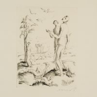 - Inscription: Signed by the artist on the right below the printing plate, inscribed on the verso with „Idyll“.