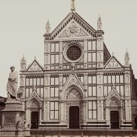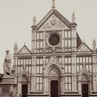 Fratelli Alinari (19th century) Circle, Dante Monument in front of the Church of Santa Croce, Florence, c. 1880, Sepia-Photography