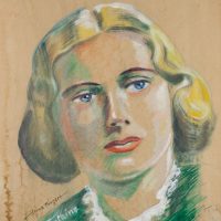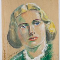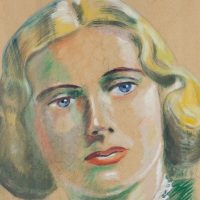 - Beschreibung: Großformatiges Porträt der Schauspielerin Joan Fontaine (geborene Joan de Beauvoir de Havilland), die in Filmen von Alfred Hitchcock – “Rebecca” und “Verdacht” – berühmt wurde. Vermutlich als Plakat zum Aushang am Kino. Unten links signiert und bezeichnet.