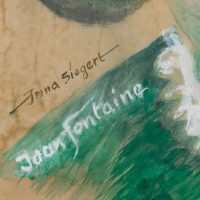 - Description: Large format portrait of the actress Joan Fontaine (born Joan de Beauvoir de Havilland), who became famous in films by Alfred Hitchcock – “Rebecca” and “Suspicion”. Probably as a poster to be displayed at the cinema. Signed and inscribed lower left.
