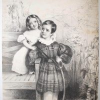 Jean François Gigoux (1806 – 1894 ), Two children, 19th century, Lithography