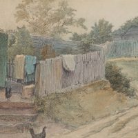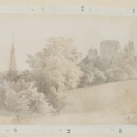- Description: Recto: Watercolour drawing, rural views in Schwabing. Verso: Pencil drawing, landscape with cathedral and butcher’s tower, Ulm.