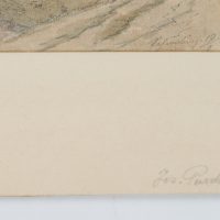 - Technik: Aquarell und Bleistift auf Papier, montiert auf Karton