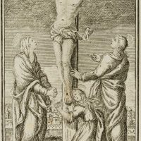 - Beschreibung: Als Einlage im Gesang- oder Gebetbuch gedachtes Belobigungskärtchen. Die zentrale Vignette zeigt die Kreuzigungsgruppe mit Maria Magdalena am Fuße des Kreuzes sowie dem Schädel Adams. Der typografische Druck wird umrahmt von einer zierenden Vignette. Unter der Darstellung in der Druckplatte signiert mit „J.G. Seiller Schaffhausen“