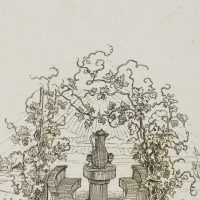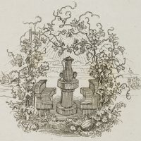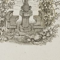 - Description: Numbered „26“ on a plate at the top right above the depiction. A wine jug stands on a small round table with two benches under a lushly vine-covered arbour. On the right and left in the background, groups of people on foot with banners and on horseback are approaching. The etching is from an album published in 1875 with 42 small-format etchings by Moritz von Schwind and poems/verses by Ernst Freiherr von Feuchtersleben on the subject of „smoking“ and „drinking“ (In vino veritas). The explanatory text for this depiction in the album reads: „To all Adam’s children, to all beckons an Eldorado, – and so they pilgrimage, and so they wallow, and find nirgnds Ruh‘. From the desert to the oasis they flow, so do you flow from the dull world – to the Galse, your Eldorado! -„