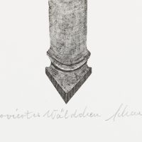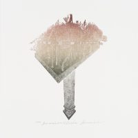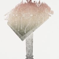 Robert Schanzenbacher (born 1950 Sulzbach on the Main), Small piece of forest fenced by barriers, c. 1980, Woodcut