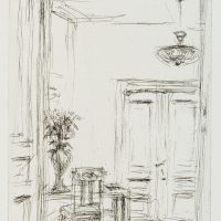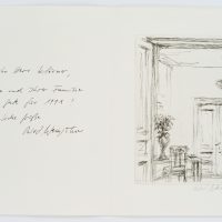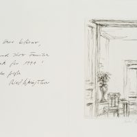 Robert Weingärtner (born 1955 Würzburg), New Year Card with Interior and Dedication, 1990, Drypoint etching