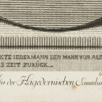 - Beschreibung: Brustbild im Halbprofil eines unidentifizierten Mannes mit pelzverbrämtem Kragen. Unter der runden Rahmung des Bildnisses ist als fingierte Inschrift ein Zitat aus D. Albrecht Hallers “Versuch Schweizerischer Gedichte” zu lesen: “_es schickte jedermann den Mann von altem Schrote in Kistlers Zeit zurück_”.