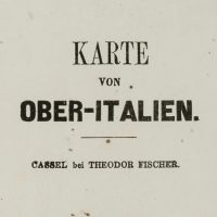 • Beschreibung: Oberhalb beschriftet mit “KRIEGSSCHAUPLATZ IN ITALIEN” und rechts mit: “KARTE VON OBER-ITALIEN. CASSEL bei THEODOR FISCHER.” Darunter eine kurze Legende zur Karte. Das Blatt zeigt eine Karte mit den verschiedenen Kriegsmanövern und Schauplätzen in Oberitalien.