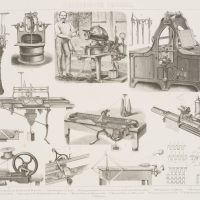 - Keywords: Knitting mill, handicraft, manufactory, knitting machine, Dubied and de Watteville, Lamb knitting machine, Hinkley, Christoffer, Kleeberg, hat press, 19th century, Realism, Technology, Germany,