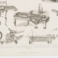 - Bezeichnung: Unten mittig im Druck bezeichnet: “MECHANISCHE TECHNIK. | 1 Rundstuhl. 2 Strickamschine von Dubied und de Watteville. 3 Strickmaschine von Lamb. [..]”.