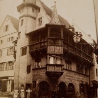 - Beschreibung: Historische Impression aus der malerischen Fachwerkstadt Colmar im Elsass. Zeigt die prachtvolle Fassade des renaissancezeitlichen Stadthauses „Pfister“ mit Erker und Galerie.