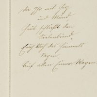 • Description: Colour print. Fine greeting card with delicate flowers and coloured embossing; decorations with glitter. Inside handwritten and dated in ink 18.10.1906.