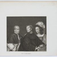 Gérard René le Villain (1740 – 1836 ) after Giorgione: Giorgio Barbarelli (1478 Castelfranco Veneto – 1510 Venice), Wicar Jean Baptiste, ‘Un concert’, Libretti d’Opera – Musical scores, 1819, Etching