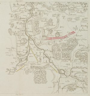 Unbekannt (18.Jhd), Landkarte, Gegend in Belgien, Condé u. Maubray, Gegenständl