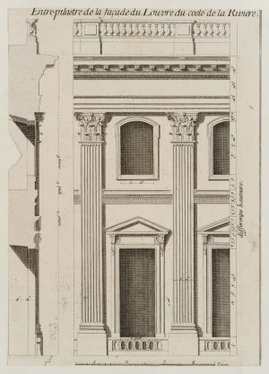 Unbekannt (18.Jhd), Fassade des Louvre an der Seine, Architektur, Rad. Klassizis