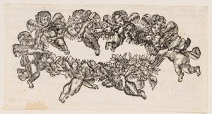 Unbekannt (18.Jhd), Barocker Buchschmuck. Früchte u. Engel, 1735, Barock