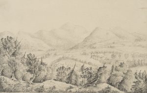 Unbekannt (19.Jhd), Wald- und Hügellandschaft bei Weilburg, 1834, Bleistift