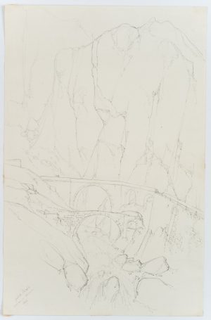 E. BRETENIÈRES (*1804), Brücke im Reusstal bei Wassen am Gotthardpass, 1835, Bl