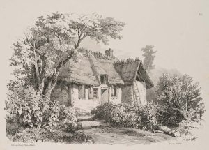 J. HUBERT (1801-1865), Haus mit Strohdach, 1850, Romantik Natur