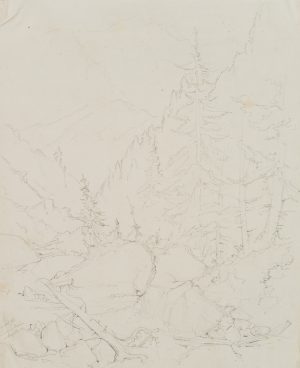 E. BRETENIÈRES (*1804), Chemin du Saut du Loup, Wallis, Schweiz, 1850, Bleistif