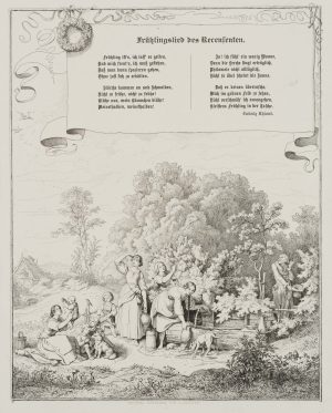 L. RICHTER (1803-1884), Ländliche Szene. Zu Uhlands ‘Frühlingslied’, 1860, Rad.
