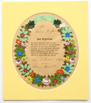 Unbekannt (19.Jhd), Geburtstagskarte mit Blumenkranz vom 01.April 1868, 1868,