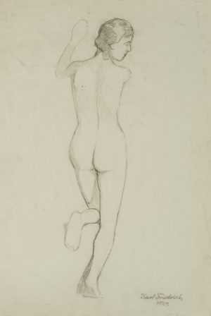 K. FRIEDRICH (20.Jhd), Weiblicher stehender Rückenakt, 1929, Bleistift