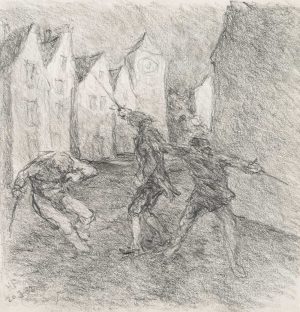 Monogramm HF (19.Jhd), Straßenszene mit Straßengefecht, nach Goethes Faust, 193
