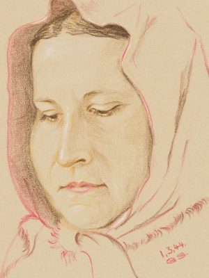 G. SAUER (20.Jhd), SAUER, Porträtskizze einer Frau mit Kopftuch, 1944, Buntstift