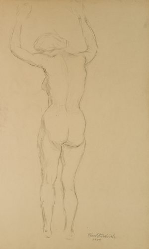 K. FRIEDRICH (20.Jhd), Weiblicher stehender Rückenakt, 1954, Bleistift