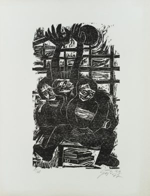 Unbekannt (20.Jhd), Expressionist. Darst. von Arbeitern, 1972, Moderne