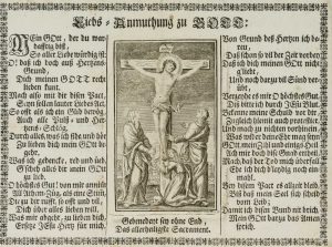 J. SEILLER (1663-1740), Belobigungskärtchen, Gesangbuchbeilage, um 1700, Rad.
