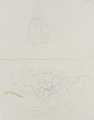T. WEBER (1813-1875), Studienblatt, Schäferin und Natur, Österreich, um 1840, Bl