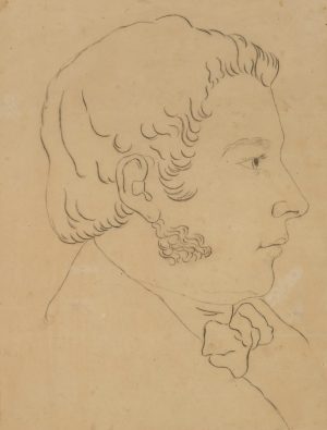 Unbekannt (19.Jhd), Porträt eines stehenden Studenten, um 1850, Bleistift