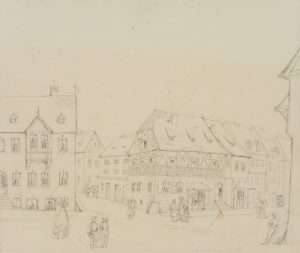 Unbekannt (19.Jhd), Flaniermeile einer Kleinstadt in Brandenburg, um 1854, Bleis