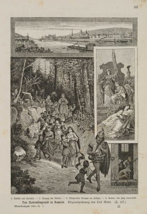 Nach RICHTER (*1803), Die Furt, Dame und Bauern bei der Flussquerung, um 1880,