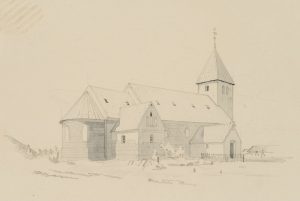 E. RONDAHL (1858-1914), Ansicht der Kirche Bryndum in Dänemark, um 1885, Bleisti