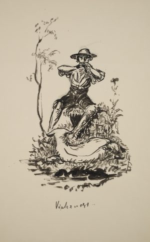 B. BURGER (1892-1968), Flötespielender Hirte mit Ziege, Tusche Moderne