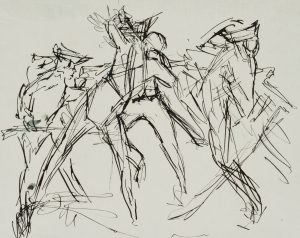 B. BURGER (1892-1968), Figurenstudie, Kampfszene, um 1820, Tusche Figürlich
