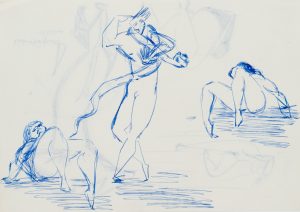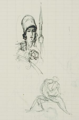 B. BURGER (1892-1968), Figurenstudien, darunter Kriegerin mit Speer, Tusche