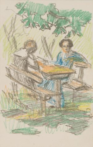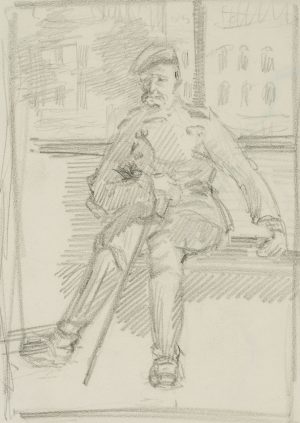 B. BURGER (1892-1968), Skizze von Figuren stehend und sitzend, Bleistift