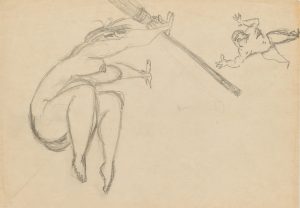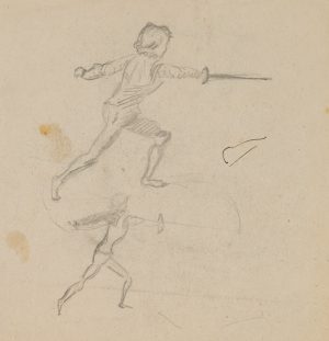 B. BURGER (1892-1968), Skizzen eines fechtenden Jungen, Bleistift Jugendstil