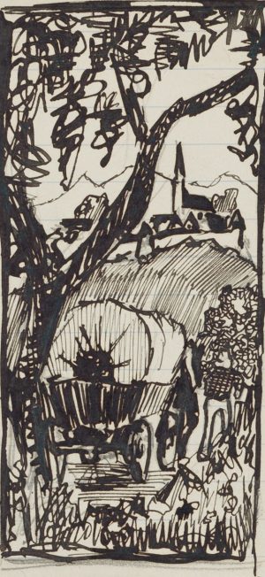 B. BURGER (1892-1968), Postkarte, Pferdetränke, Person mit Pferd, um 1916, Feder