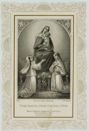 C. ERNST (19.Jhd), Votivkarte, Votivbild mit Anbetung Mariens, Sst. Realismus