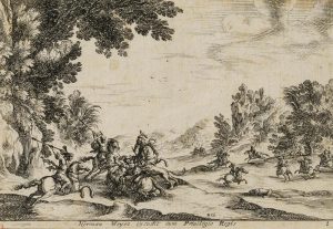 C. COCHIN (1688-1754), Löwenjagd, Barock Landschaft