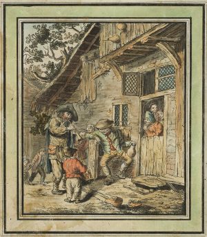 C. AMSTEL (1726-1798) zug., Wandernde Musiker an Bauernhaus, Rad. Klassizismus